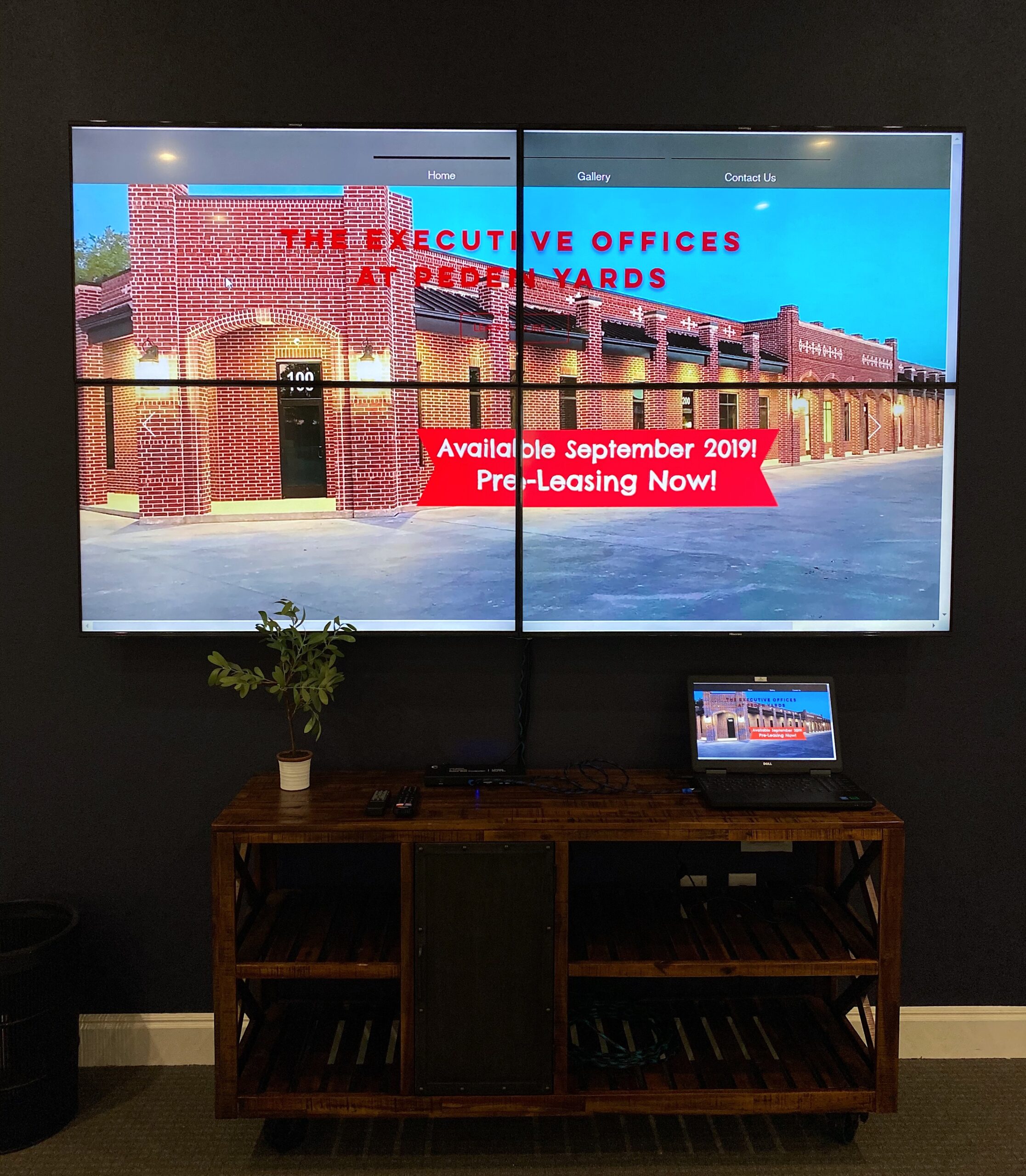 The Suite 650 conference/board room has six (6) TV monitors, four of which are connected via a media connector to create a 110" TV wall. You can wirelessly broadcast your device to the TVs individually or connect to the media wall via HDMI.